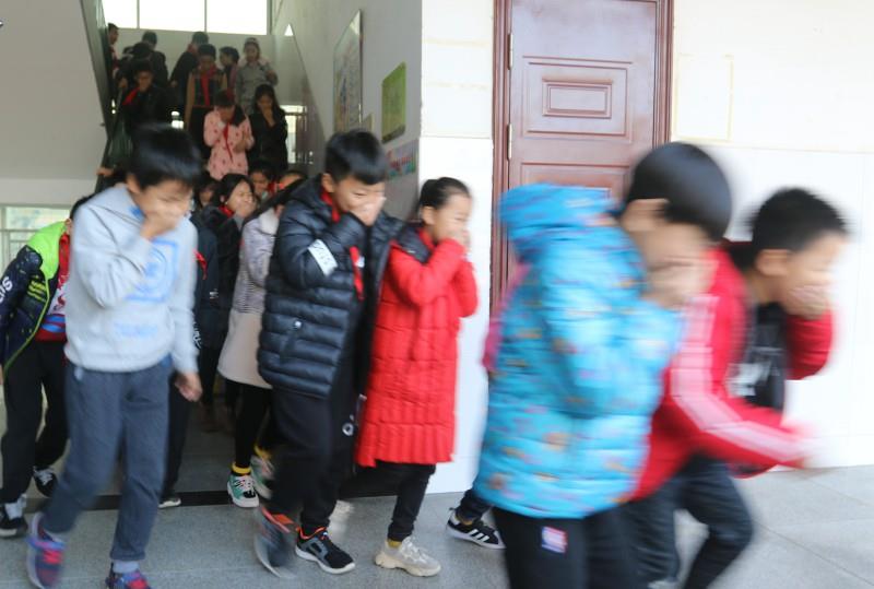 随着校园警报声响起,各楼层值班教师立即到岗,确保演练过程的安全,并指导帮助学生做出正确逃生姿势;各班正副班主任带领学生一前一后根据演练方案中规定的路线,用手帕或毛巾等捂住口鼻,弯着腰、猫着步,安静、有序、快速地按紧急预案疏散线路,撤离到学校操场上。整个逃生过程中,学生基本做到下楼梯快速行走,先到先下,无强行冲挤行为,动作迅速,不吵闹,不慌乱。