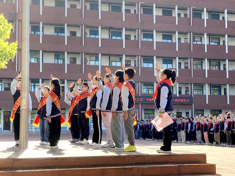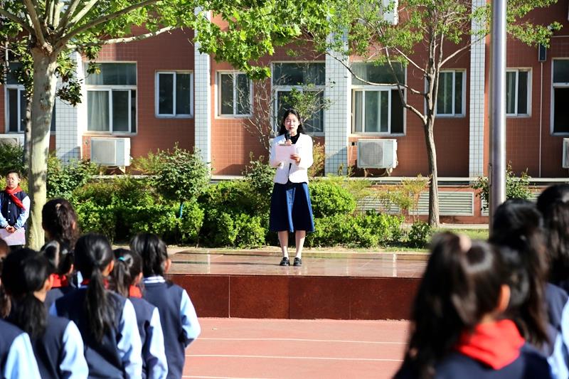 中队辅导员代表康梦甜老师作国旗下讲话。康老师向同学们科普“全民国家安全教育日”的由来,呼吁队员把爱国情化为行动,将维护国家安全变成习惯,号召同学们“做国家安全的守护者、传播者、践行者”。