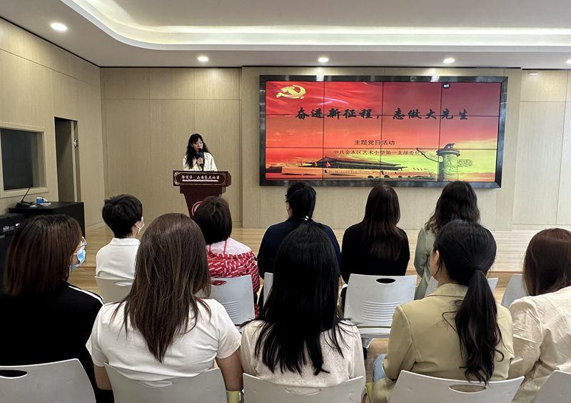 为深入学习贯彻落实党的二十大精神,准确把握新时代师德师风建设精神实质和思想内涵,艺术小学第一党支部在5月22日下午开展了“奋进新征程 志做大先生”主题党日活动。本次活动由第一支部书记杨丽丽同志主持,全体党员教师参加。