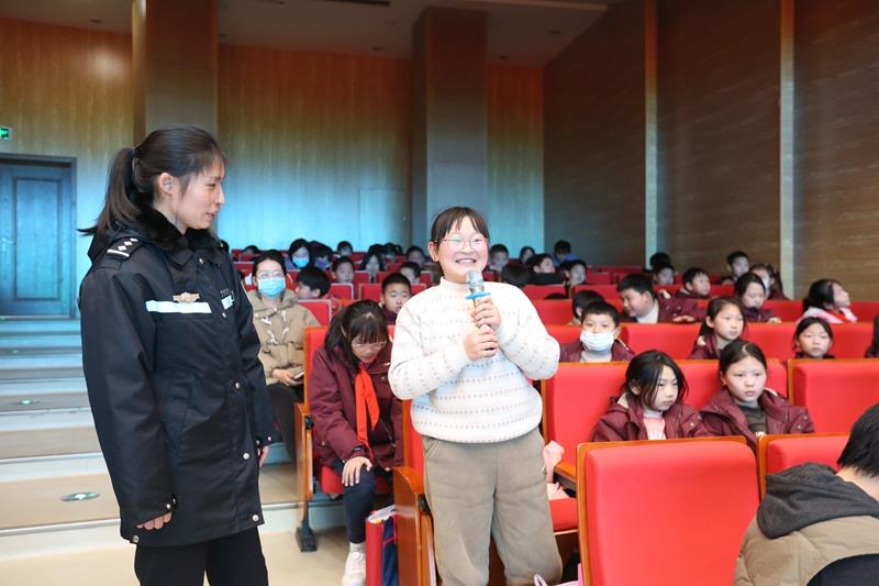 夏警官围绕反对校园欺凌、消费者权益保护等主题,结合真实案例,以讲故事的方式现场说法,引导学生遇事应理性沟通,及时寻求家长、老师的帮助,用和平手段和法律武器保护自己。