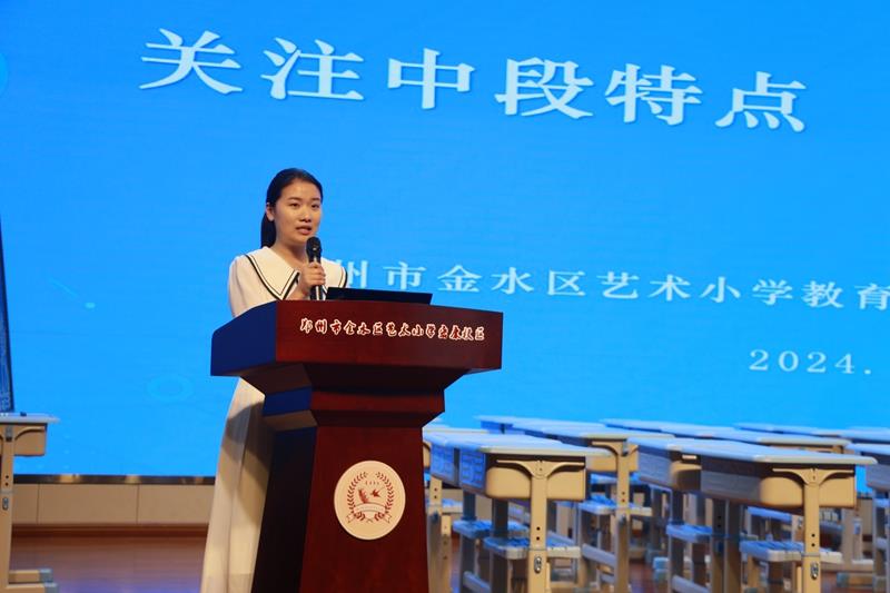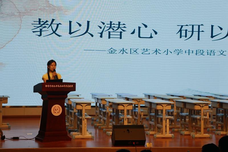 三校区中段教师代表结合各校区的教学实践进行了教学经验的分享。宏康校区曹坛老师以“慧读,阅享,成长”为主题进行了分享,结合中段学生及教学特点,曹老师从日常阅读习惯养成及有效的阅读教学策略、阅读成果等方面进行分享,从理论到落实的具体实操,充分展现了校区扎实的阅读教学活动。本部校区张高霞老师跟据新课标提出的学段要求,从“立足课堂教学,抓好语文基础”、“教会学习方法,提高学习潜力”、“抓好阅读与写作”、“拓展知识视野”四个方面结合校区内的教学实例进行了经验分享。金科校区李慧慧老师则主要针对于中年级的阅读和写作训练进行了“循序渐进,共促阅读和写作能力”的主题汇报,李老师从阅读力纵向发展到书目推荐、阅读目标和写作“小支架”、“训练点” 把中段学生阅读所要达到的标准及有效阅读策略进行了详细的解析。分享结束之后,艺术小学学科发展中心语文学科主管领导教导处主任赵玮霞对本次研讨活动进行了总结。赵主任强调:三、四年级是语文学科的过渡阶段,中段语文教学要紧扣课标,区分好低段中段和高段各自的特点,做好定位,做好前后衔接,关注学科核心素养的同时要夯实根基,扎实开展常规教学,从“词语段的运用”“整体阅读力的培养”“加强阅读方法的策略指导”“写作方法指导”“综合素养提升”等多个方面切实提高中段学生语文学习的综合能力。