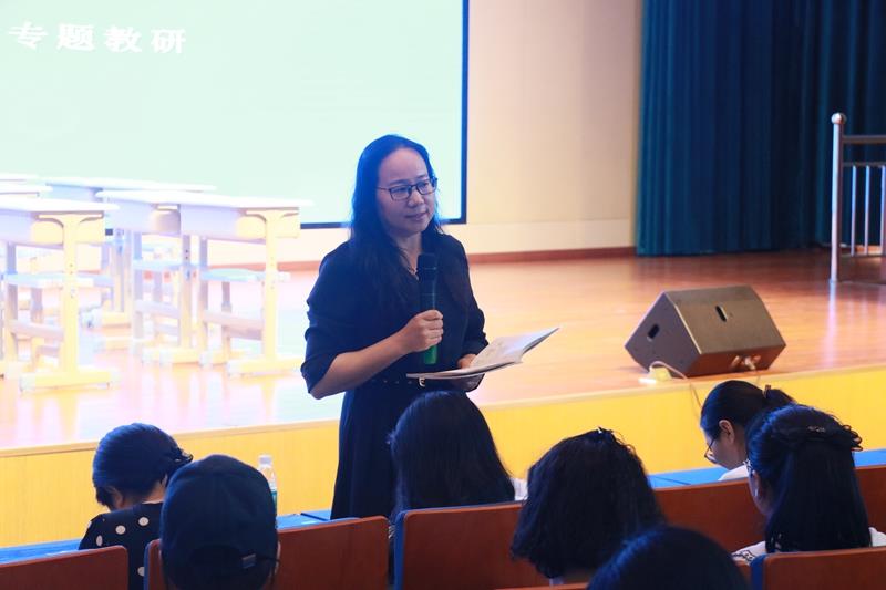 语文学科教研员张谦老师对本次教研活动进行点评指导。首先充分肯定了学校语文学科扎实、有效的教研氛围,同时提出中肯建议,希望更好地聚焦主题,整合优化,设计学习任务,落实语文要素,让教研更具指向性。她指出,语文教学就是简单的事情重复做,重复的事情坚持做。教师要加深课标、教材研读,精准把握教学内容,整合单元知识,构建单元任务群,做好单元任务群在单篇教学中的落实;创设情境,明确学习任务,在语文实践活动生成评价,达到教学评一体化。在教学要做好学善思的老师,敢于迈大步子,走出课文,由浅入深地进行有效延伸拓展,创设丰富的活动让学生参与进来,共同受益。