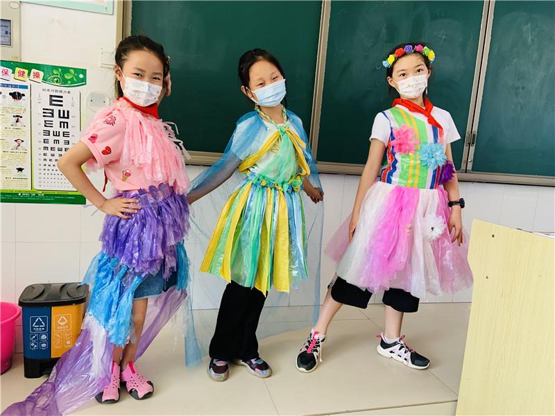 老师们一直都非常注重培养学生实践与动手操作能力,注重引导提升学生思维能力,开拓创新能力,充分展示学生的想象力,以及积极思考的能力。在此次活动中,孩子们能积极提出自己的新想法,运用生活中废弃的可二次利用的废旧物品进行设计装饰,并动手实现自己的想法。在展示汇报中,看到一张张稚嫩的小脸,因为穿着自己亲手设计的服装,而露出的自信的、开心的笑脸,老师们由衷的替他们感到骄傲。