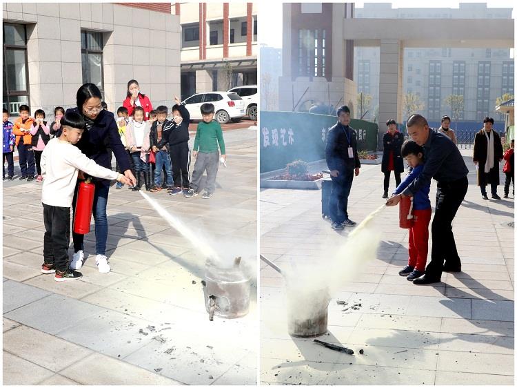 学校老师还现场演示了灭火器的操作程序,使老师们掌握了正确使用灭火器的方法。小科豆儿们也学会了使用灭火器,表示要从自我做起,树立防火防灾的安全意识。