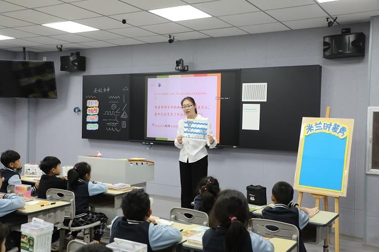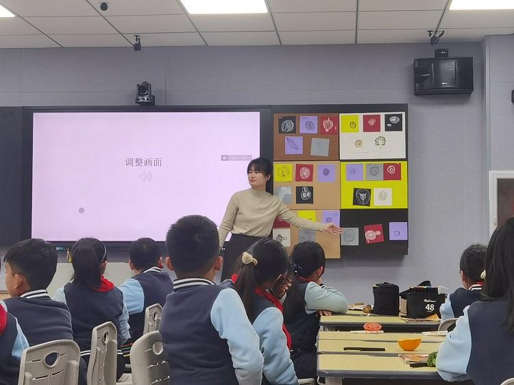 本次活动中,郭晶晶老师和王莹老师进行了不同年级的课堂展示。郭老师所授三年级《新发现》一课中,思路清晰,环环相扣,从切一切、画外形、画细节到最后的调整环节,处处体现以学生为本的教学思想,步步引领学生去发现、去探讨、去描绘,用简单的语言和清晰的教学活动环节将整堂课贯穿其中。