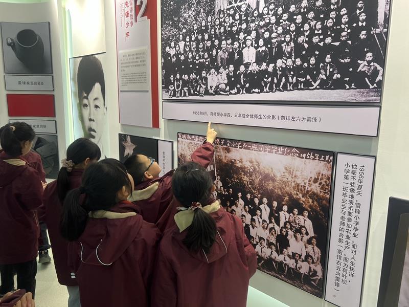 纪念馆里,一张张老照片、一件件老物件、一篇篇手稿、一个个鲜活的场景,为同学们呈现出雷锋同志的成长历程和感人事迹。每一个队员都看得特别认真和投入,郑州七中的讲解员们生动的讲解,也让展厅里的照片和文字变得更加鲜活起来。