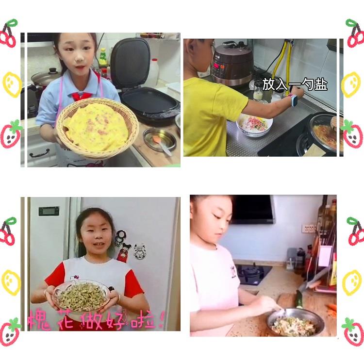 “哇,这杯西瓜汁看起来真好喝。”“这道番茄炒蛋放得盐好像有点多,肯定会很咸。”“他把被子叠的像豆腐块一样,真整齐,我也要向他学习,帮妈妈分担家务!”孩子们看着视频嘴里不禁发出这样的感叹,看到自己的同学各个都是生活小能手,教室里不断响起阵阵掌声......在老师的表扬声和同学们的鼓励中,孩子们感受到了劳动的快乐与成就感,成功地将承担家务劳动转化为“深度的、真实的自主学习”。