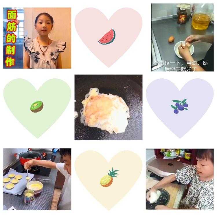 瞧,香甜的蛋挞、喷香的煎饼、金黄的荷包蛋,还有美味的面筋、水饺、蒸菜。这个假期,小科豆儿们都学会了做几样拿手饭菜。