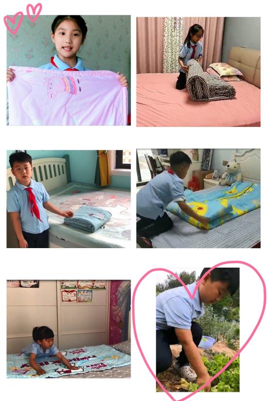 除了学做饭,学生们在家还承担起擦桌子、拖地、洗碗、整理房间等家务活。虽然他们年龄不大,可背后的潜力可是无穷的呢!瞧,整齐的被褥、干净的地面、有序的书桌,在那一双双稚嫩的小手中出现了。