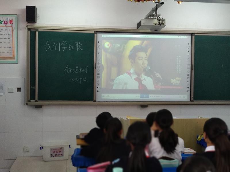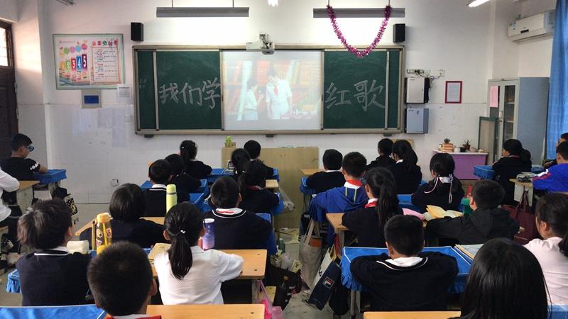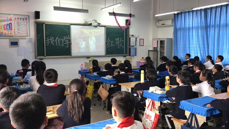 一首红歌,记录一段峥嵘岁月;一首红歌,象征一面光辉旗帜。为增进学生对历史的了解,激发学生的爱国热情,我校在建国70周年之际,开展了爱国主义教育系列活动,于5月6日下午少先队活动课进行了“我们学红歌”活动。