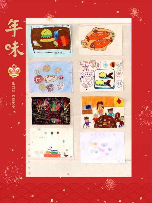 我是小小绘画家,小科豆儿们绘画了一幅幅以年夜饭为主题的作品,并且演唱了英文儿歌《Happy new year》。