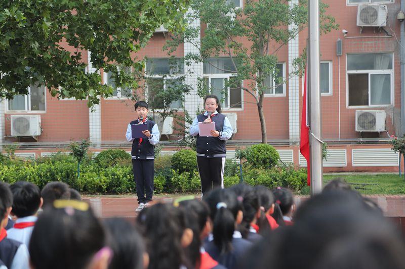 伴随着激动人心的旋律,鲜艳的五星红旗冉冉升起,少先队员面向国旗敬礼,胸前的红领巾迎风飘扬。一张张灿烂而又充满稚气的小脸,无不流露出饱满的爱国热忱;声声高昂的《国歌》,无不展示出少先队员对祖国的热爱与赞美!