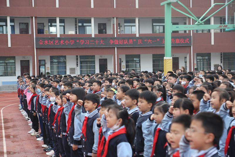 为引导少年儿童继承和发扬少先队的光荣传统,高举中国特色社会主义伟大旗帜,引领全体队员从小学党史、感党恩、听党话、跟党走,努力成长为担当中华民族复兴大任的时代新人,在“六一”国际儿童节即将到来之际,5月29日上午,艺术小学开展“学习二十大 争做好队员”庆“六一”主题升旗仪式。