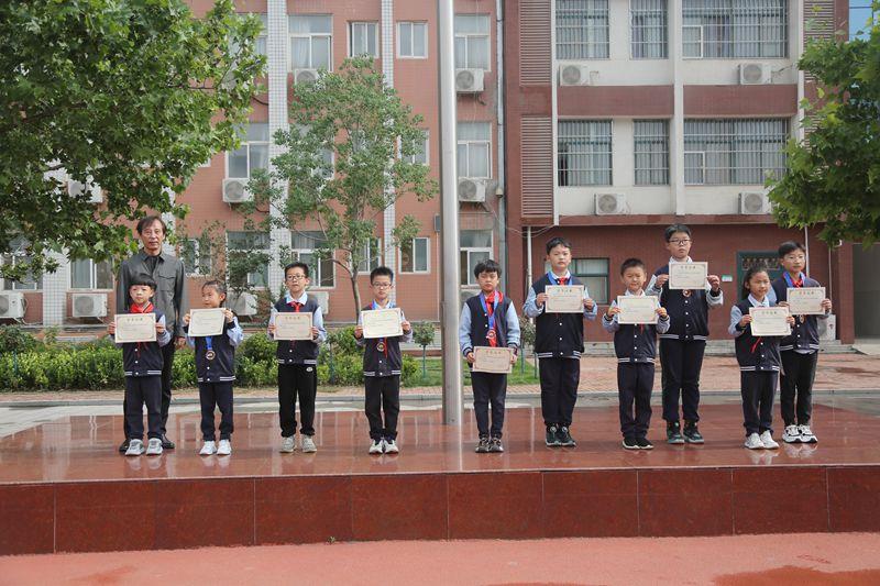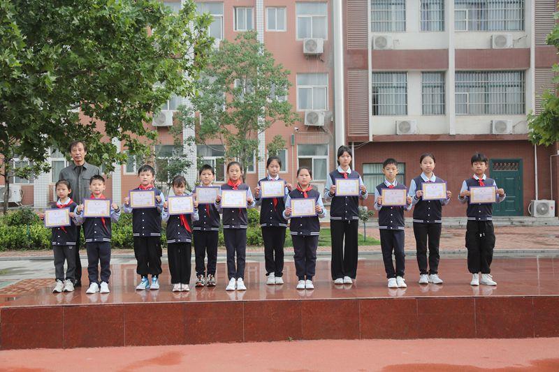 在郑州市第五届中小学科学运动会上,艺术小学参赛代表队脱颖而出,再创佳绩。利用本次活动,为优秀同学、辅导老师进行颁奖。