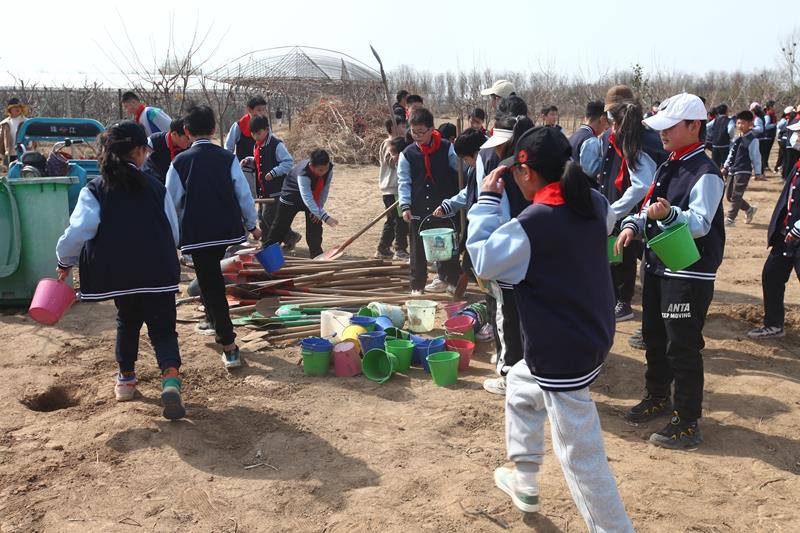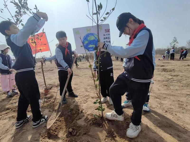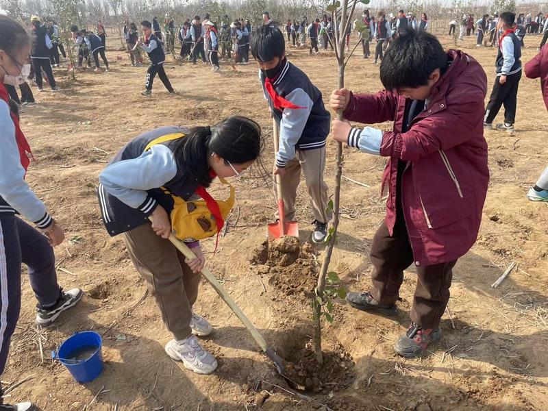 阳春三月,草长莺飞。冬日的寒意还未褪尽,春天带着绿色的气息向我们走来,春风吹绿了枝头上的嫩芽,吹绿了地上的小草,也吹动了孩子们植树添绿的热情。3月11日下午,艺术小学五年级全体师生来到荥阳那滋味农场,开展“播种希望 静待花开”植树节主题系列活动之“我与小树共成长”植树活动,以实际行动护航绿水青山,为大地再添新绿。