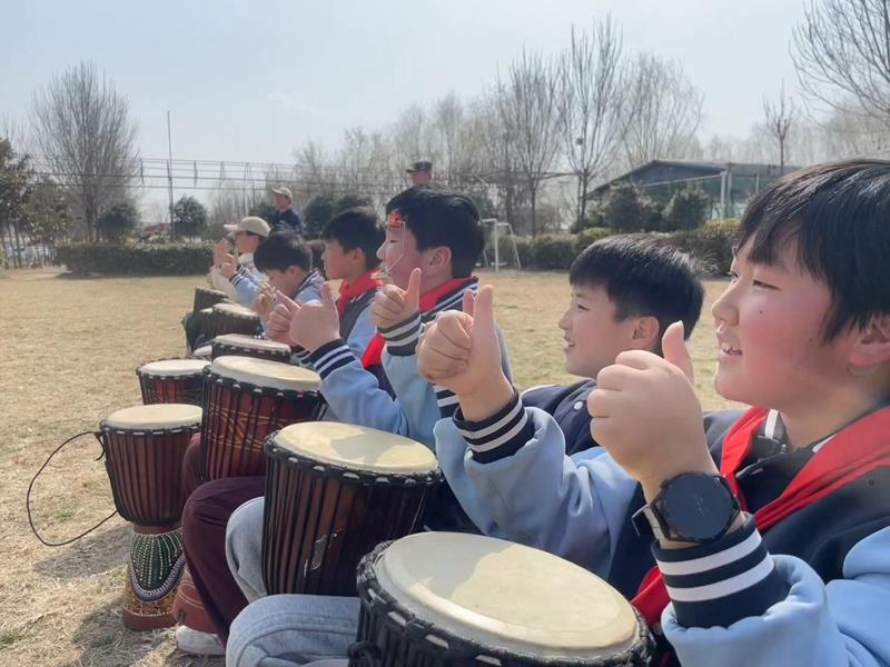 “快乐的非洲鼓”环节,同学们和着节拍自由自在地摇摆,纷纷展示自己的才艺,玩得不亦乐乎……