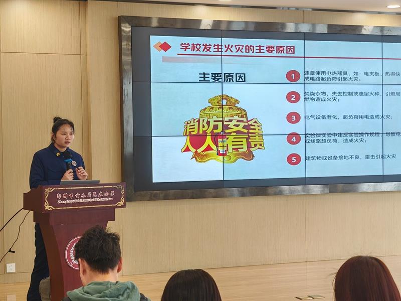 郝教官结合近期的火灾案例和大家生活中经常忽略的危险行为,就消防日常管理、平常检查、遵守以及疏散逃生的基本常识、消防火灾的应急和预防、消防器材的正确使用方法进行了深入浅出的讲解;期间,老师结合自己工作和生活中所接触到的消防安全隐患提问,进行了互动与沟通。郝教官又列举了大量实例和现场的图片,展示缺乏消防意识和消防知识的严重危害,并重点介绍了灭火器、灭火毯以及多功能安全锤的用途和方法;最后郝教官结合实际,对火灾特点、预防火灾的基本常识,火灾发生、发展、熄灭的基本规律和特点等方面知识进行了讲解,传授了防范措施和如何对初期火灾进行扑救,以及如何组织人员疏散、火场自救逃生方法等知识。