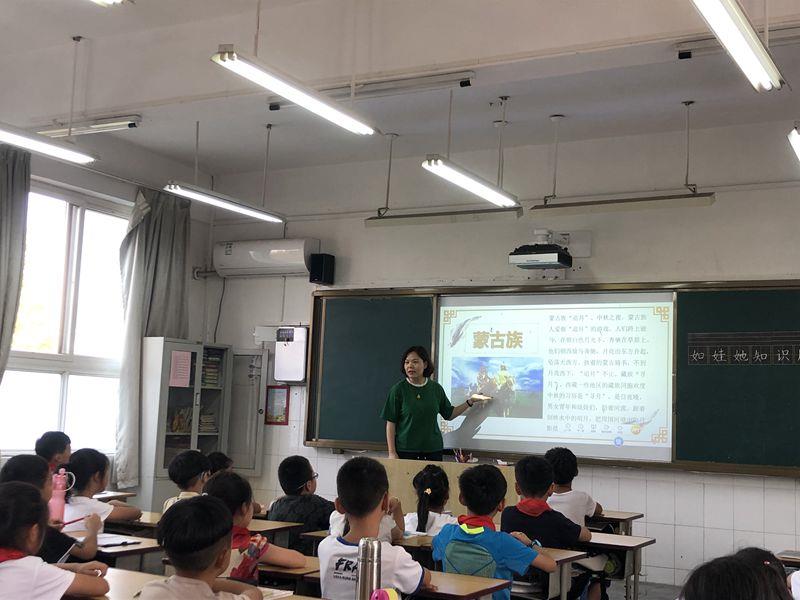 老师们认真地向学生介绍了中秋节的由来和各民族中秋节习俗, 中秋节是流行于中国众多民族的传统文化节日,自古便有赏月、拜月、吃月饼等习俗,以月之圆兆人之团圆,祈盼国泰民安、人民幸福。各少数民族庆祝节日的方式更加多样, 蒙古族人爱做“追月”的游戏,人们跨上骏马,在银白色月光下,奔驰在草原上;侗族有“行月”的习俗,芦笙歌舞队踏着一路月光,到别的山寨赛歌赛舞,彻夜长欢;彝族习俗是“跳月”,村寨的男女老幼都聚集在山村中的开阔地,激情地载歌载舞……同学们听得津津有味,感受到民族融合的伟大与国家的团结兴旺,对于郑州市承办的第十一届全国少数民族传统体育运动会有了更深入的了解。