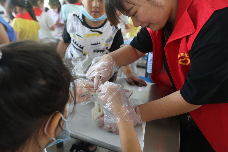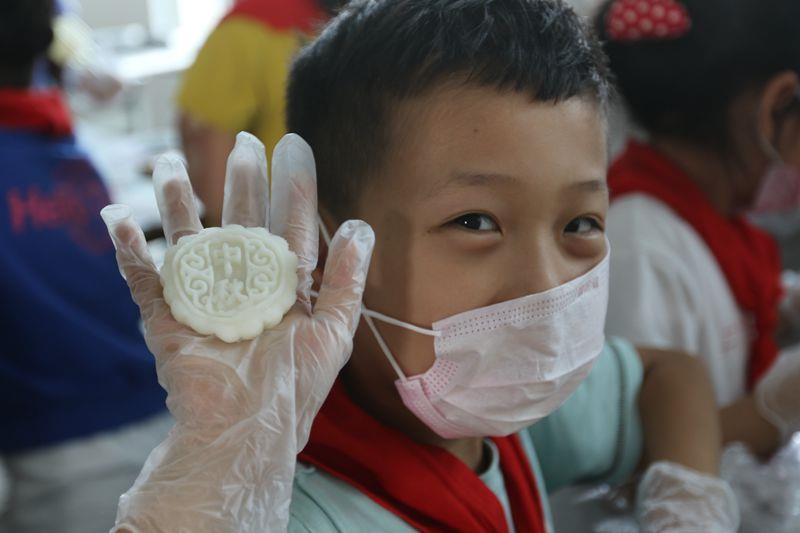 活动中,志愿者们手把手教孩子做月饼,一起和好饼皮,把做馅料的食材捣成泥,把饼皮晾凉后和馅料包在一起,用模具压制成型,一个小月饼就做好了。精美的月饼像一张张笑脸对着孩子们微笑,品尝月饼时,一些孩子却不吃,悄悄把月饼藏起来,原来他们想把自己的劳动果实带回家和爸爸妈妈一起分享。这才是中秋团圆最美好的真谛吧--阖家团圆,家国同庆。