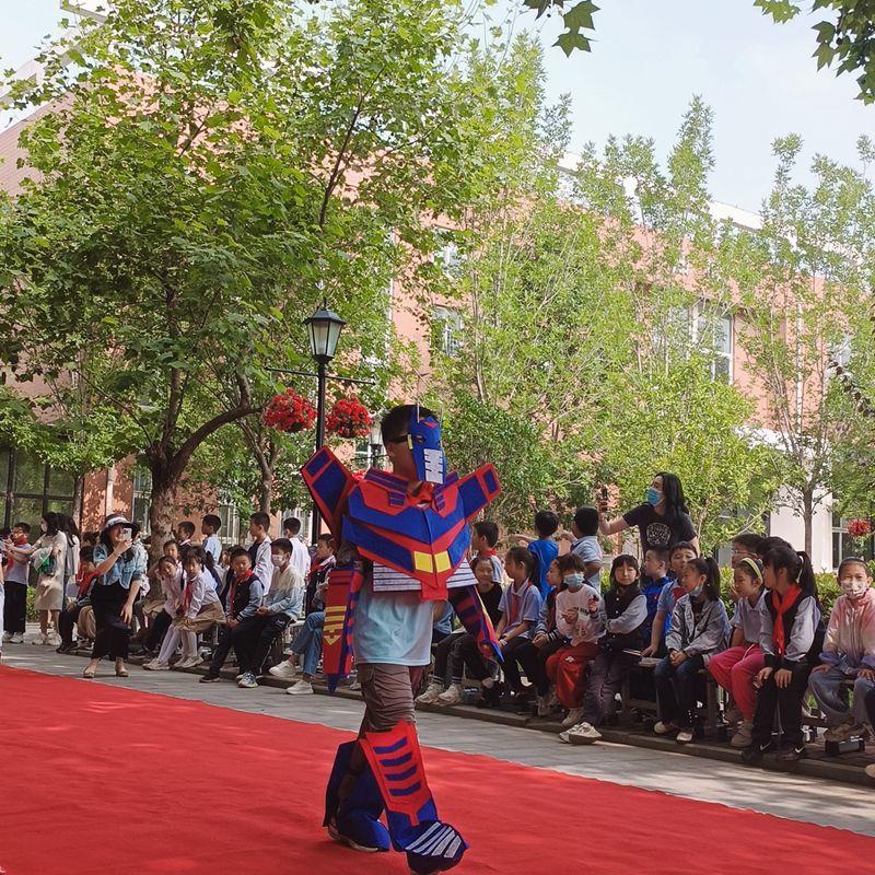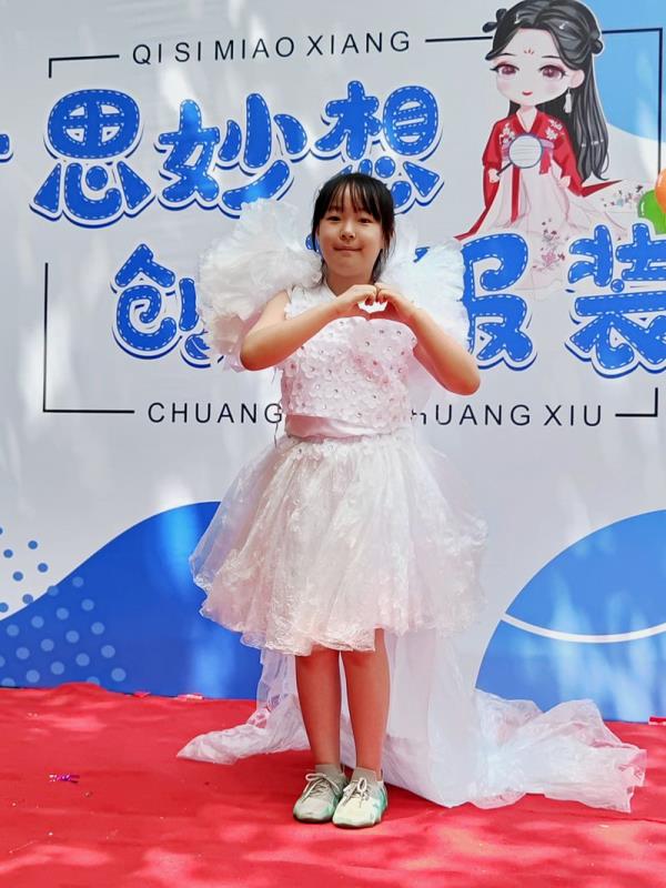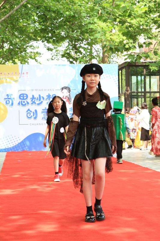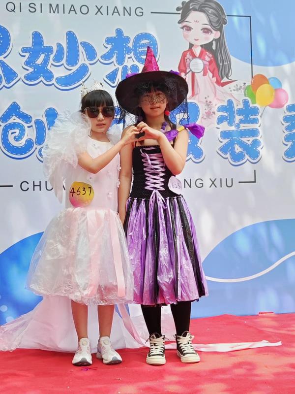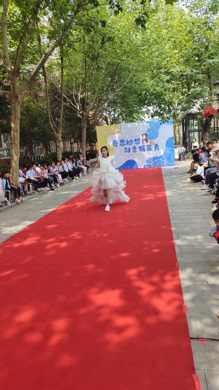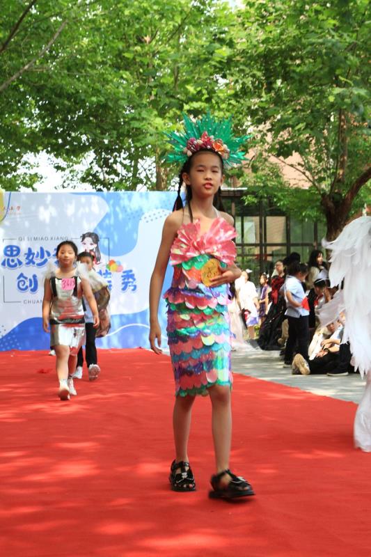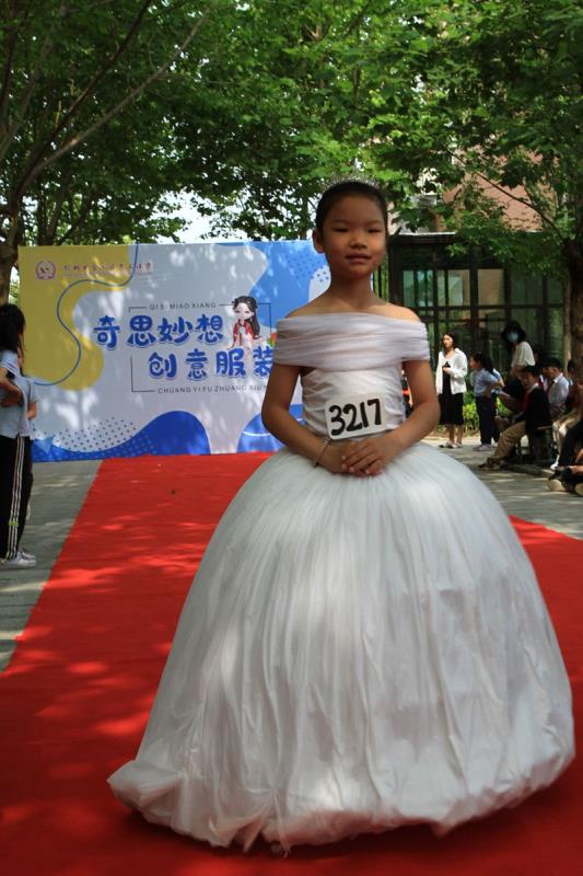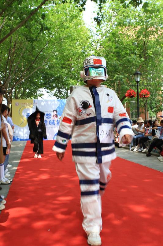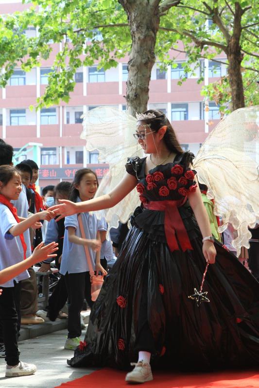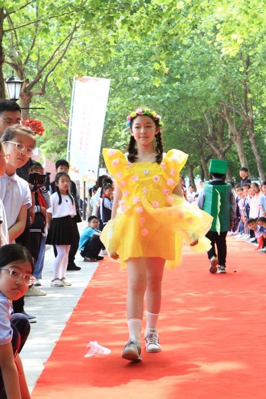 清晨,一条红毯铺满了林荫大道,迎接着一个个快乐天使的到来。三四年级的孩子都穿上了自己设计的五彩缤纷的服装,在活动中我们看到孩子们创意十足的各类造型。一些不起眼的废旧材料,如纤维袋、报纸、扑克牌、塑料袋、包花纸、旧纸箱、闲置衣服等,经过巧妙的构思制作后变成了一套套独一无二、富有个性的精美时装,有梦幻华丽的公主裙,时尚个性的潮流服饰,新奇有趣的动物造型,彰显历史文化的传统服饰,还有致敬航天员的航空服......