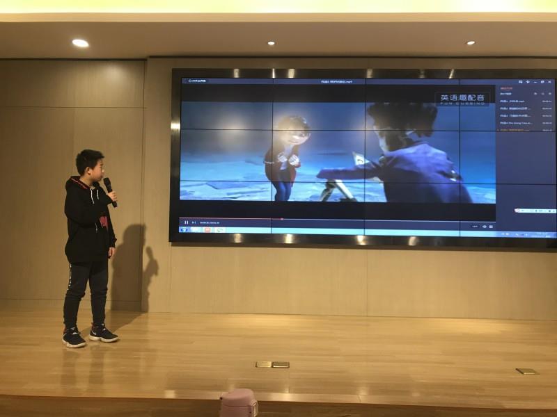 主持人热情洋溢的开场后,小选手们分组别展示了自己的精彩配音与表演。在长达一个多小时的比赛过程中,各位小选手落落大方,台风稳健,使出浑身懈术,向观众和评委展现了自己的英语配音风采。配音比赛为现场配音,配音的片段由参赛选手自由选定,小选手们有的一人分饰两角,有的反串,他们用优美的声音、生动的演绎,再现了扣人心弦的电影片段,用自己独特的声音为在场观众和评委带来了一场视听盛宴,赢得了观众阵阵掌声。